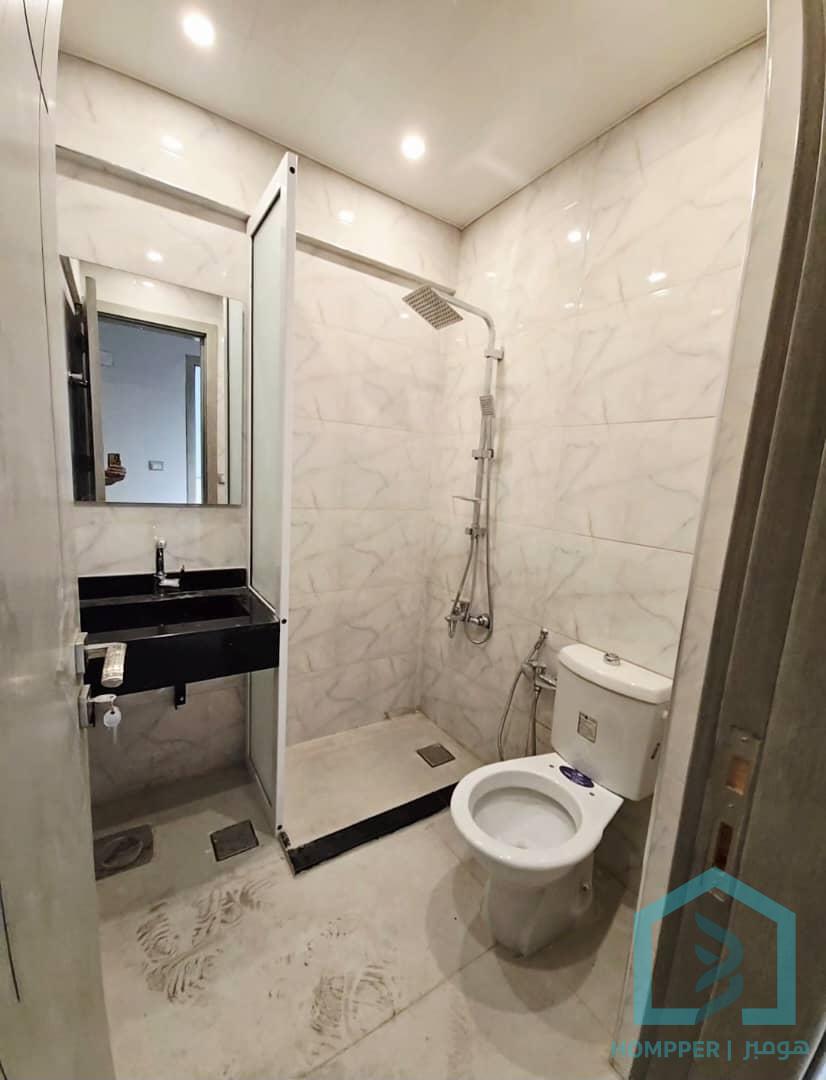ثلاث غرف و صوفا ومطبخ واسع وحمامين وبرندة اطلالة مفتوحة بشكل كامل الاكساء سوبر ديلوكس ملكي حديث الملكية طابوأخضر2400سهم برئ الذمة التسليم فوري