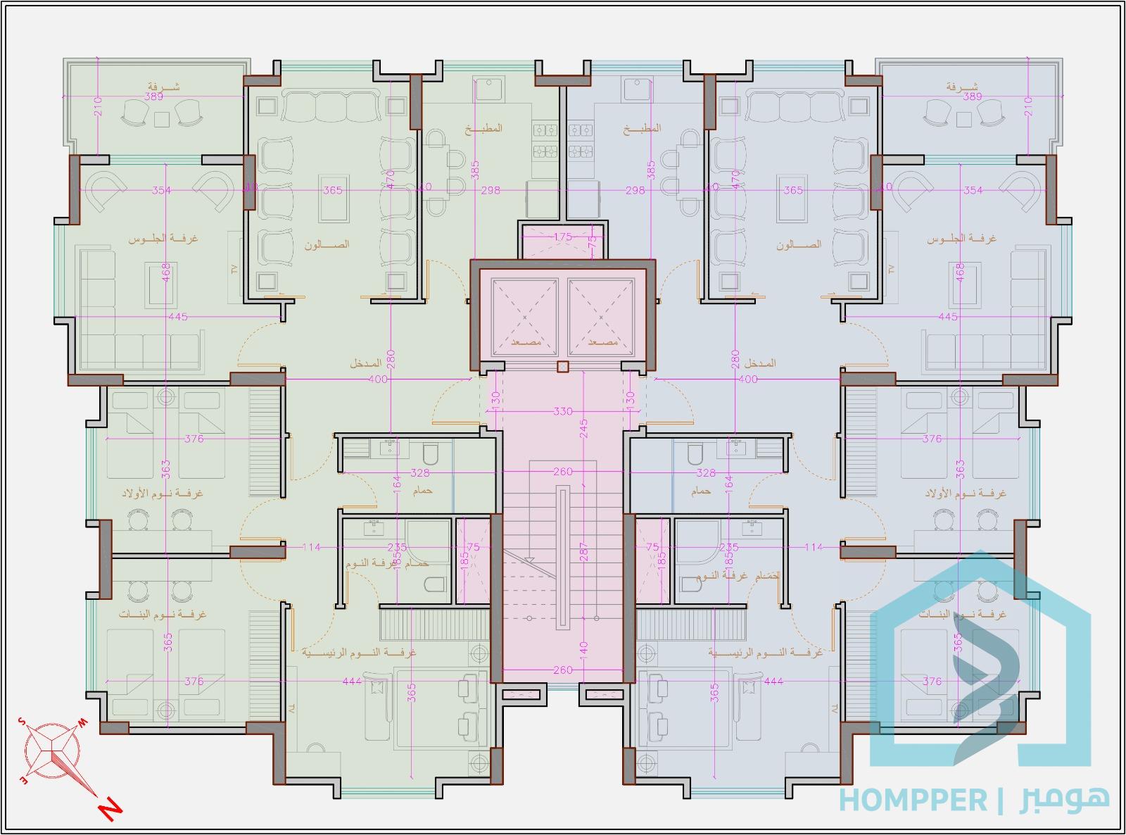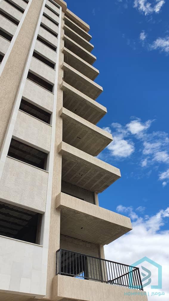 مؤالف من (ثلاث غرف نوم .. صالون .. غرفة جلوس ..انتريه دخول .. مطبخ .. حمامين.. برندا ) . الاتجاه : جنوبي غربي شرقي الاكساء الخارجي للبناء حجر و اكساء المدخل و الدرج رخام - انترفون - السطح ملكية مشتركة - مصعد يعمل على الطاقة الشمسية ويوجد مولدة للبناء قبو خاص كراج للسيارات للشقق وخدمات مشتركة - غرفة للشوفاج و غرفة لخزانات المازوت - خدمات ناطور للبناء.