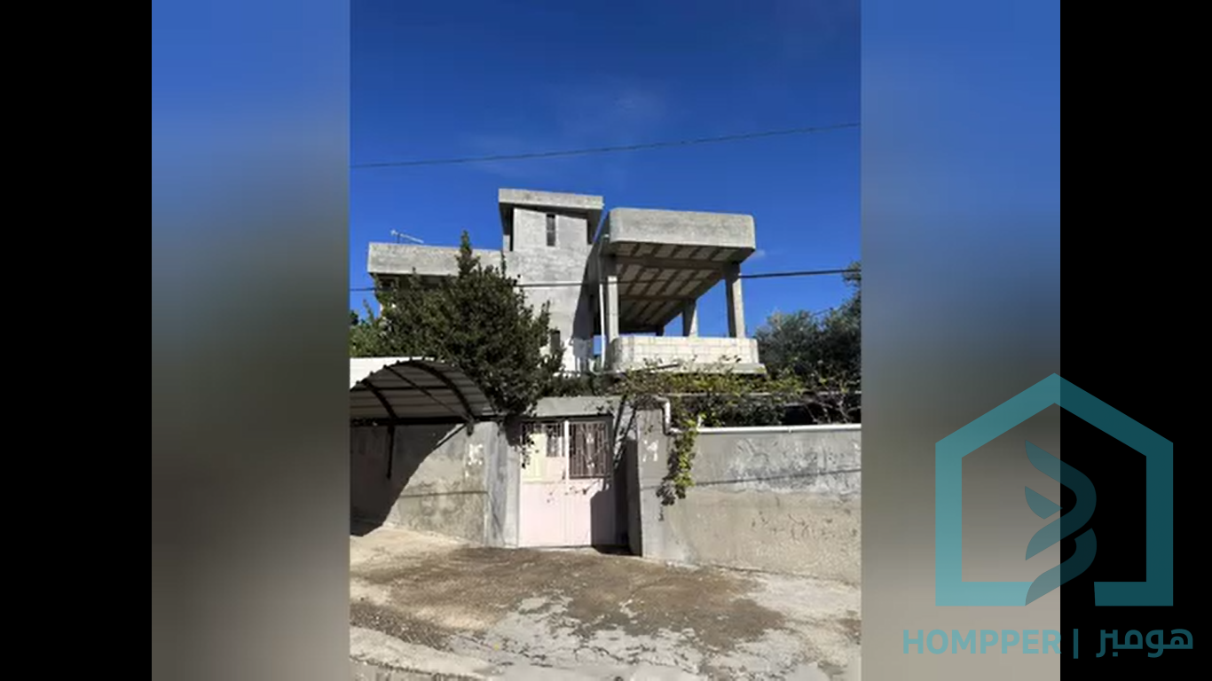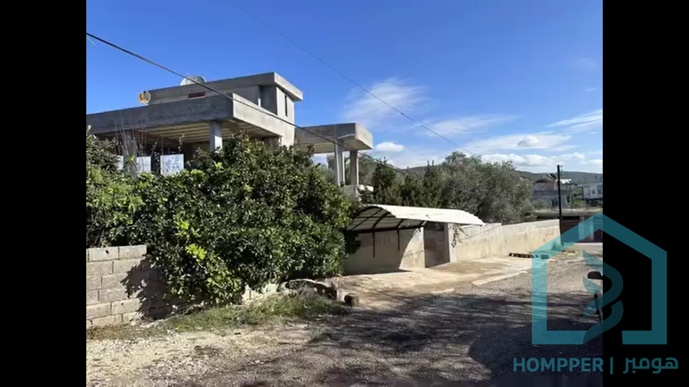 للبيع بيت عربي طابقين مساحة البيت مع الارض 960 متر مربع مساحة كل طابق 110 متر مربع الطابق الاول شقة جاهزة للسكن الطابق الثاني مصبوب عواميد وسطح نظامي الارض الامامية مع البيت 460 متر مربع عالشارع مباشرة الارض خلف البيت مساحة 500 متر مربع يوجد بير مي مزروعة اشجار