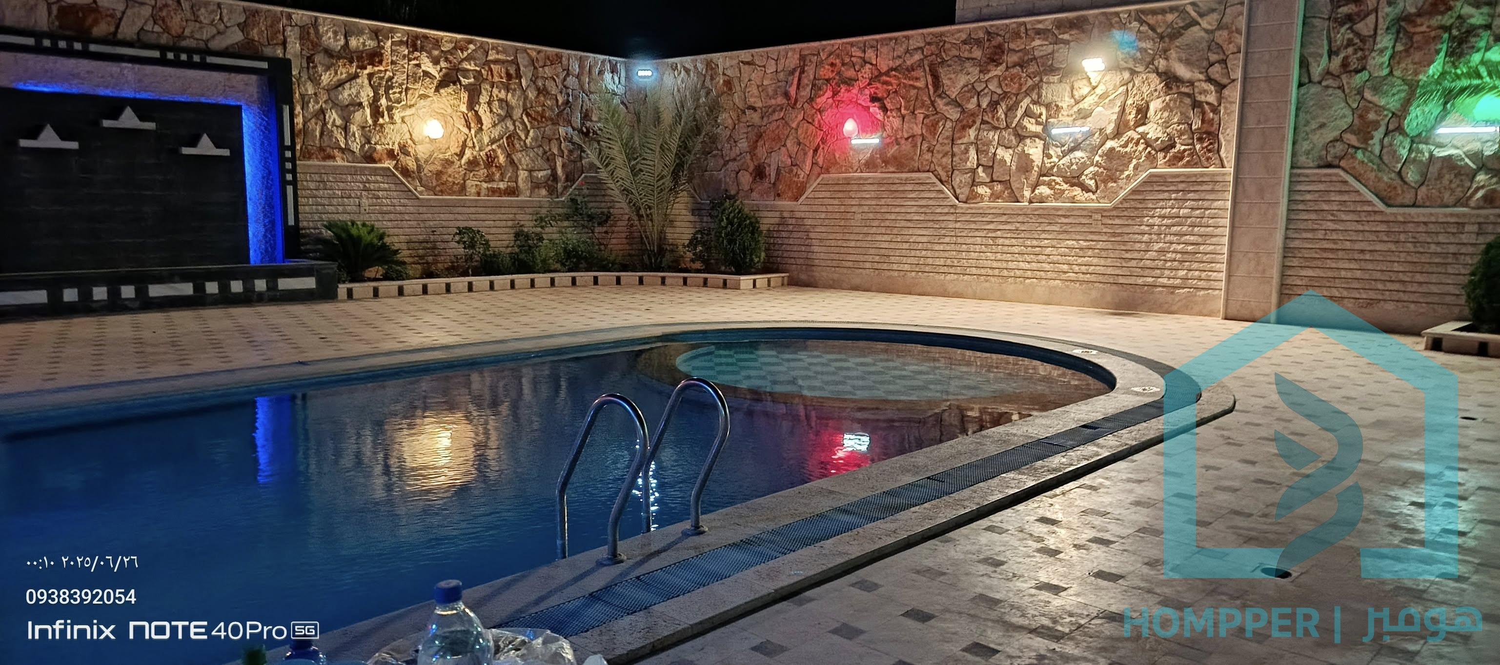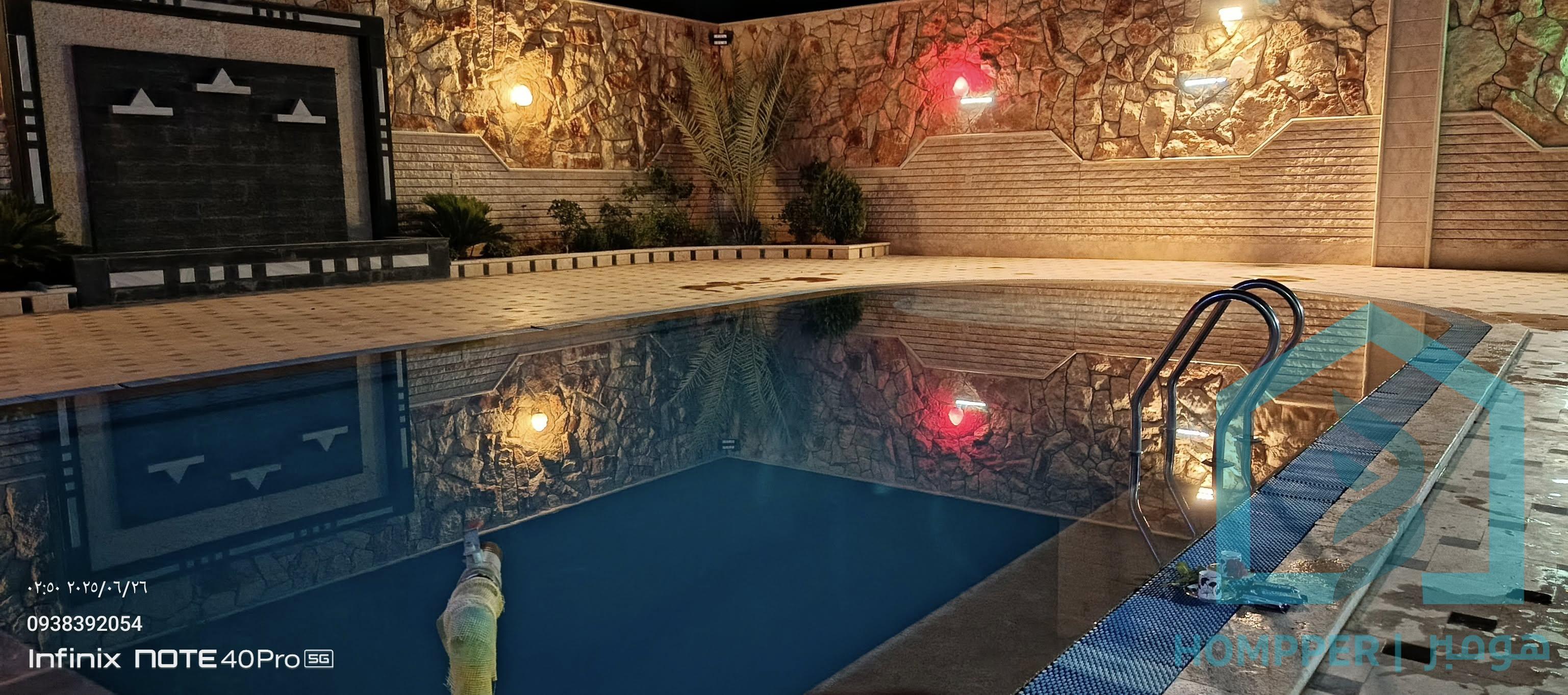 للبيع مزرعة بزهرة المدائن بأحلى موقع وأفضل شارع زاوية / واجهة 35 متر مساحة العمار 320 متر المساحة دونم 1000 متر الملكية 800 سهم ....................................... حجر طبيعي من الخارج والداخل شلال + باربكيو + تدفئة مركزية ***** عبارة عن طابقين ***** الطابق الارضي عبارة عن 3 شقق (1) - 3 غرف وصالون ديلوكس (2) - غرفتين وصالون ديلوكس (3 )- غرفتين وصالون عضم (4) - شقة خاصة بالناطور منفصلة عن البناء .................................. الطابق العلوي عبارة عن 4 غرف وصالون وتراس كبير سوبر ديلوكس .................................... يوجد جب بحري خاص بالمزرعة مسبح مفلتر بالأضافة لمسبح بيضوي بداخله للأطفال طاقة شمسية لكامل المزرعة ثلاث ساعات كهرباء موصولين ساعة تريفاز ساعة مياه قابلة للداكيش على شقق ضمن حماه