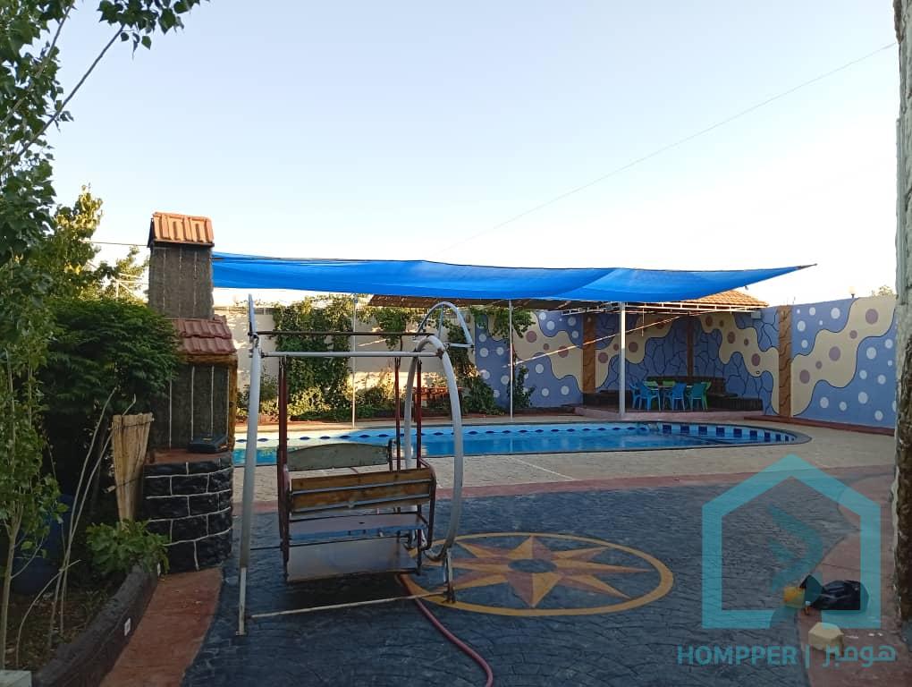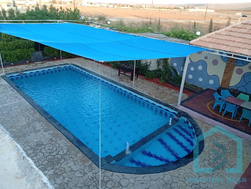 بتنظيم مرخصة بئر ماء بناء ١٠٠ متر مؤلف من غرفتين وصالون كبير مطبخ مفتوح ع صالون حمامات داخلي وخارجي مسبح مفلتر 14 ب 6 كهربا وطاقة شمسية خاصة بلمزرعة السعر 600 مليون
