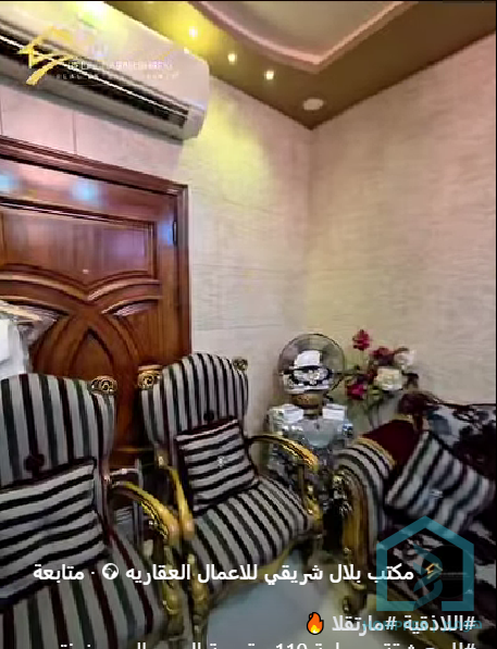 اللاذقية للبيع شقة بمساحة 110 مقسمة الى صالون وغرفتين نوم وحمامين ومطبخ وبرندا باتجاه قبلي غربي ضمن بناء جديد ملبس حجر