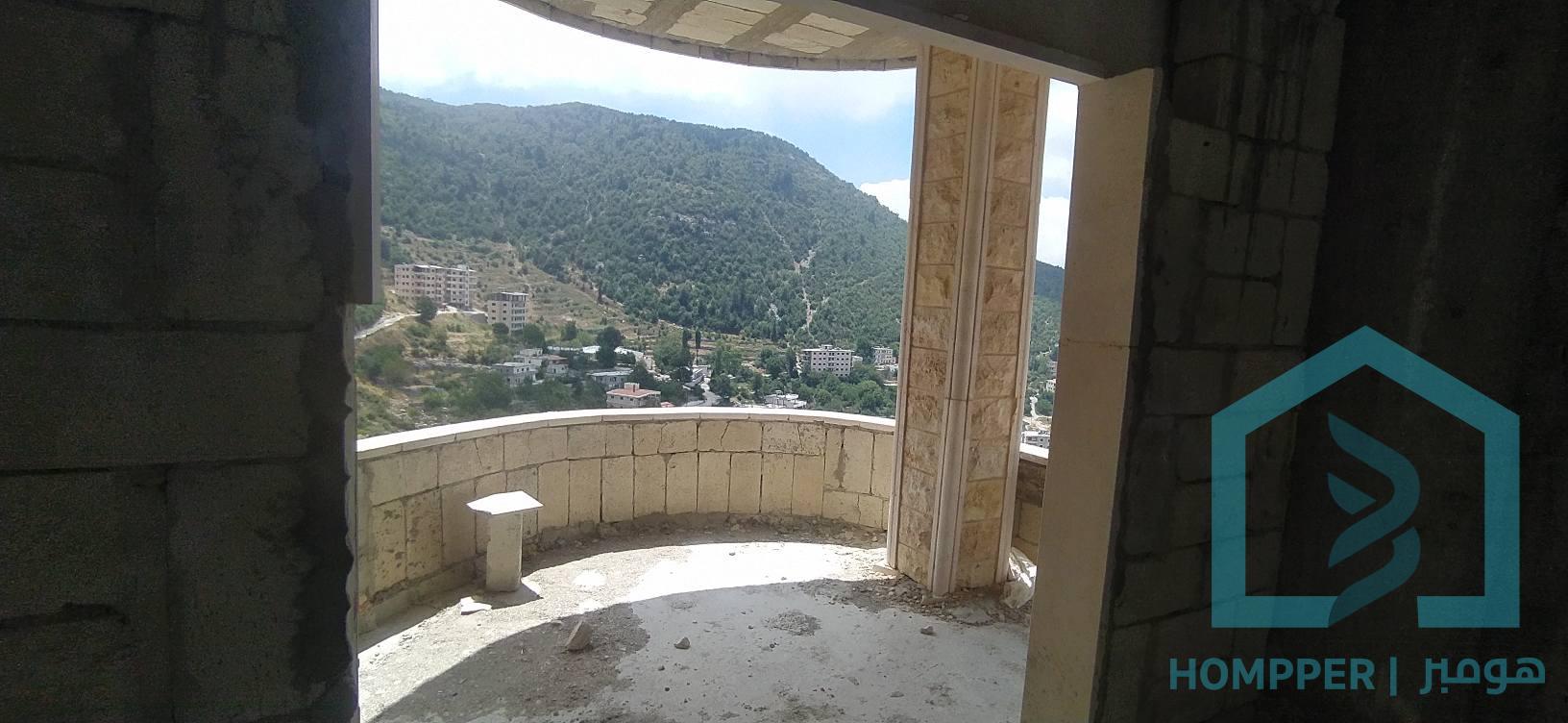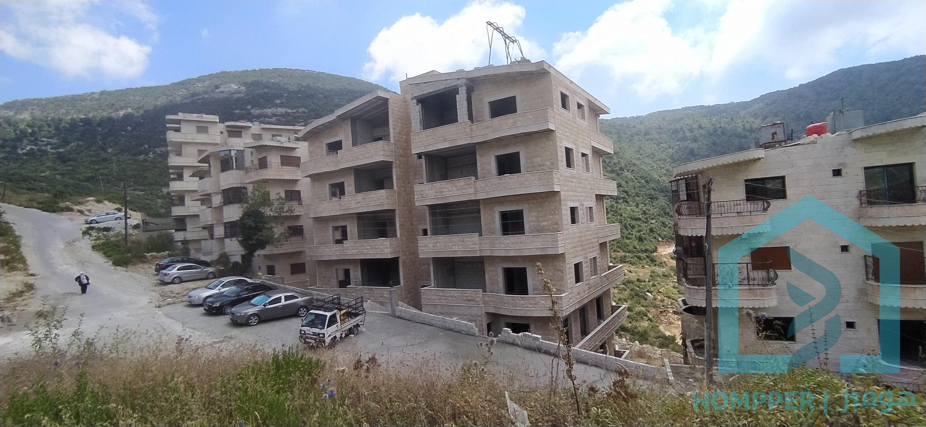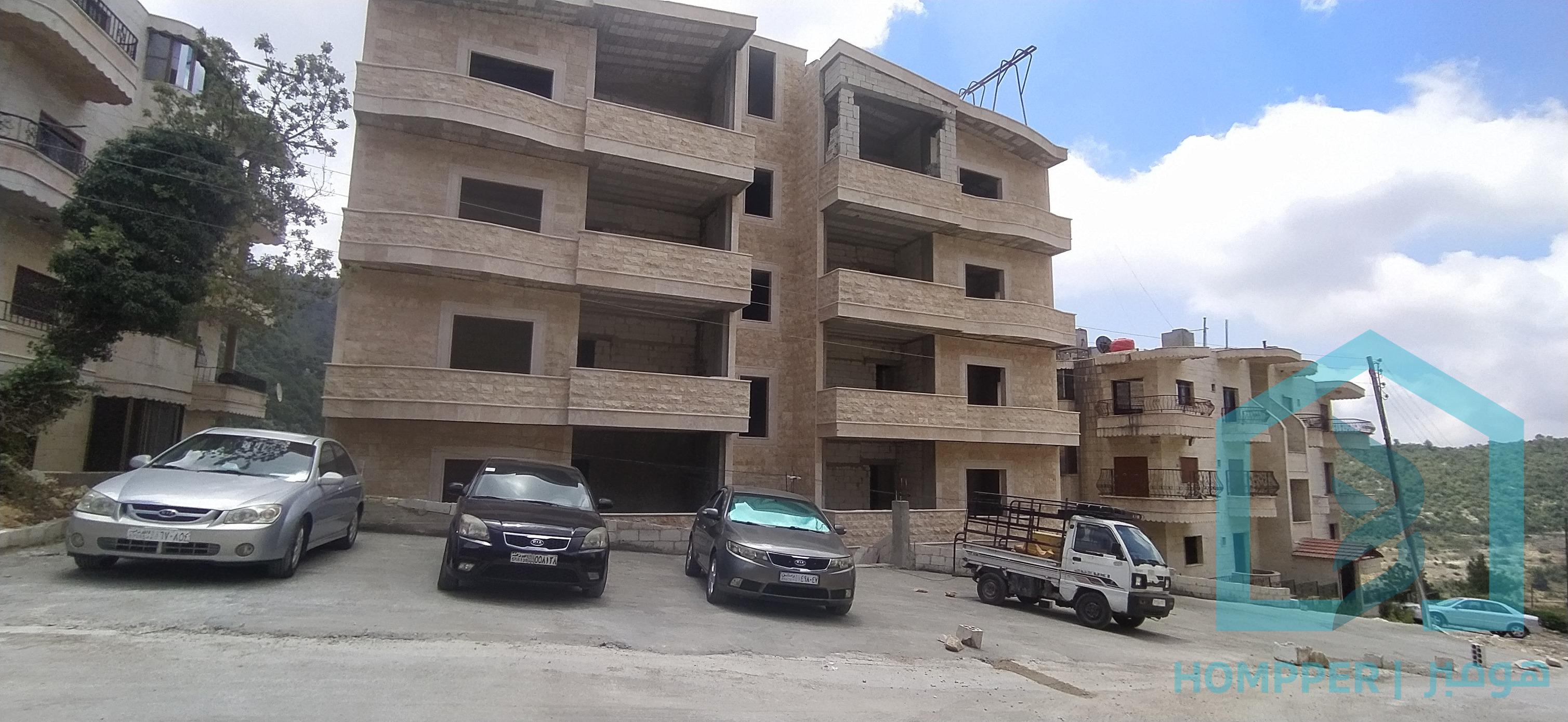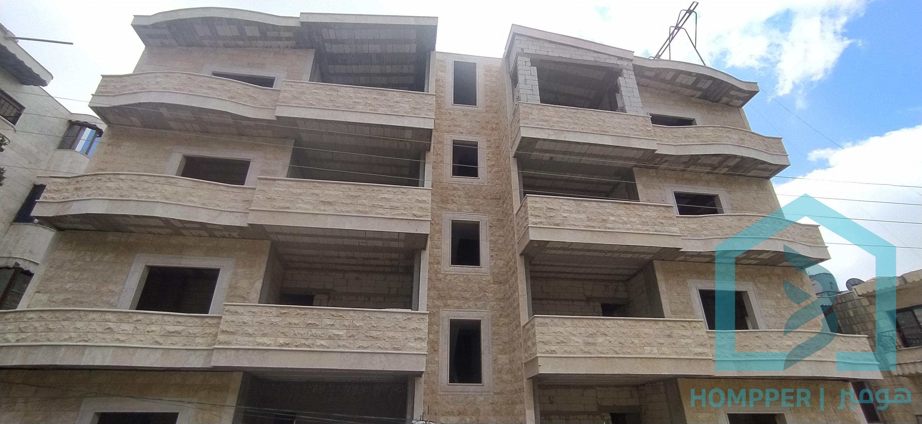 بمساحة 115متر مؤلفة من غرفتين وصالون أطلالة مميزة جدا تجهيز على العضم مقطعة بلوك ملبسة حجر الماء والكهرباء واصلة لمدخل الشقة طابو أخضر سند تمليك طابق اول فني