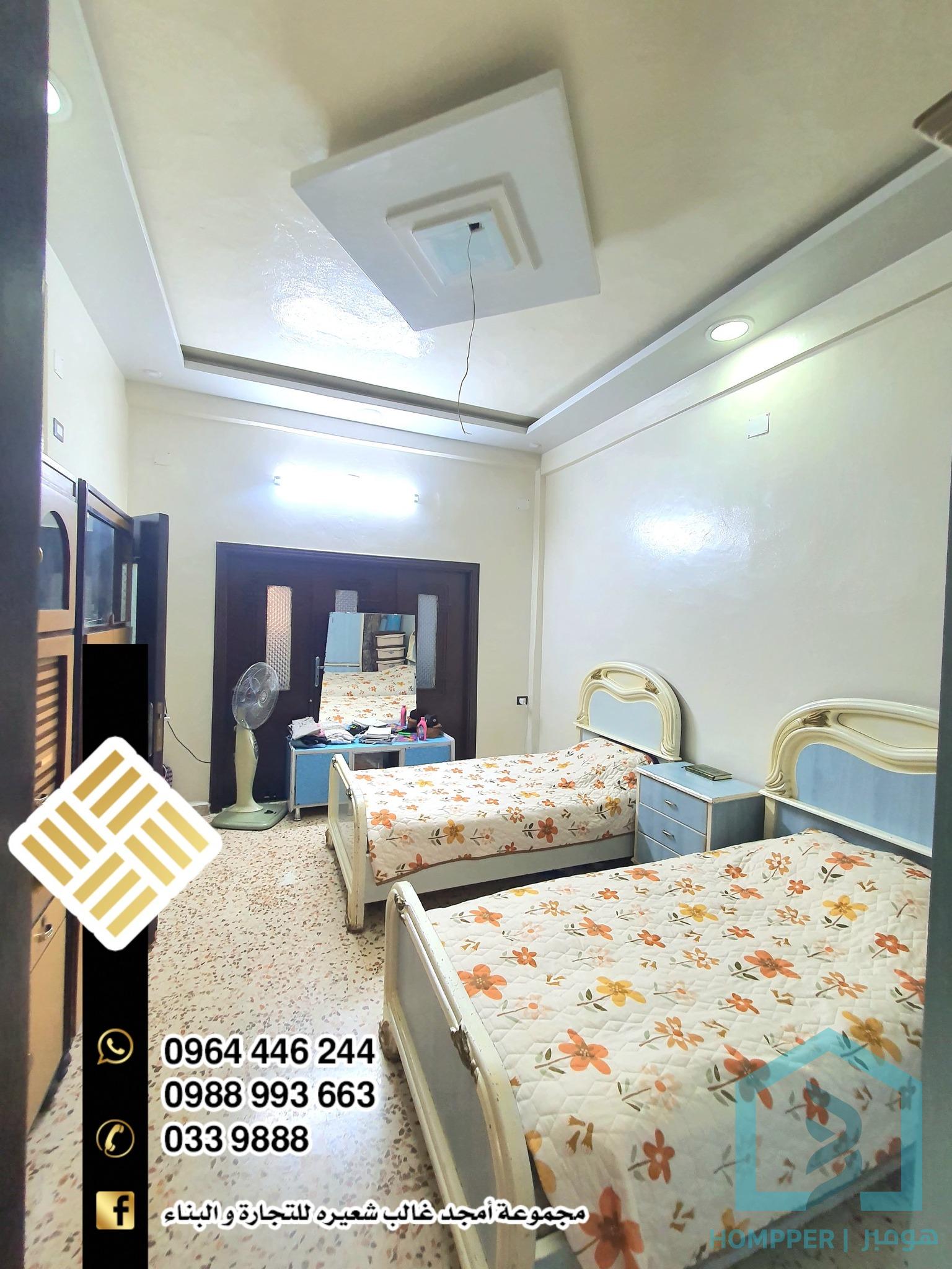 اربع غرف وموزع وجنينة الاكساء جيد مساحة الشقة 187 متر طابق ارضي طبعاً سند 2400 سهم مع دكان ع شارع مساحه 20 متر