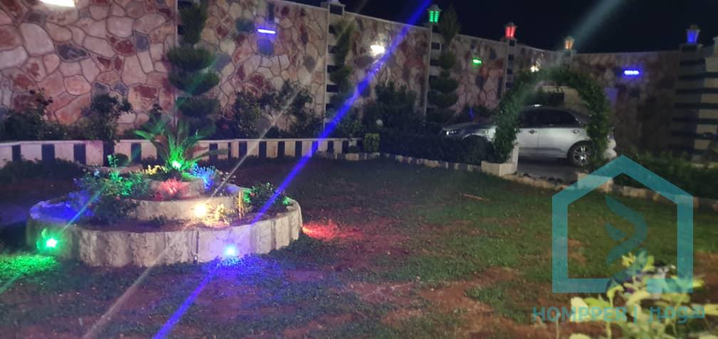 بسم الله ياجبار مزرعة للبيع مفروشة بمساحة 750 متر تبعد عن استراد حماة حلب 300 متر شارع من الاستراد للمزرعة مزفت جنينة كبيرة مع ساحة للسيارات مسبح كبير مفلتر مع مجموعة طاقة شمسية شلال وبربكيو واكساء سوبر ديلوكس من الداخل والخارج وجب خاص لمزرعتين غرفتين وصالون مع مطبخ وحمامات