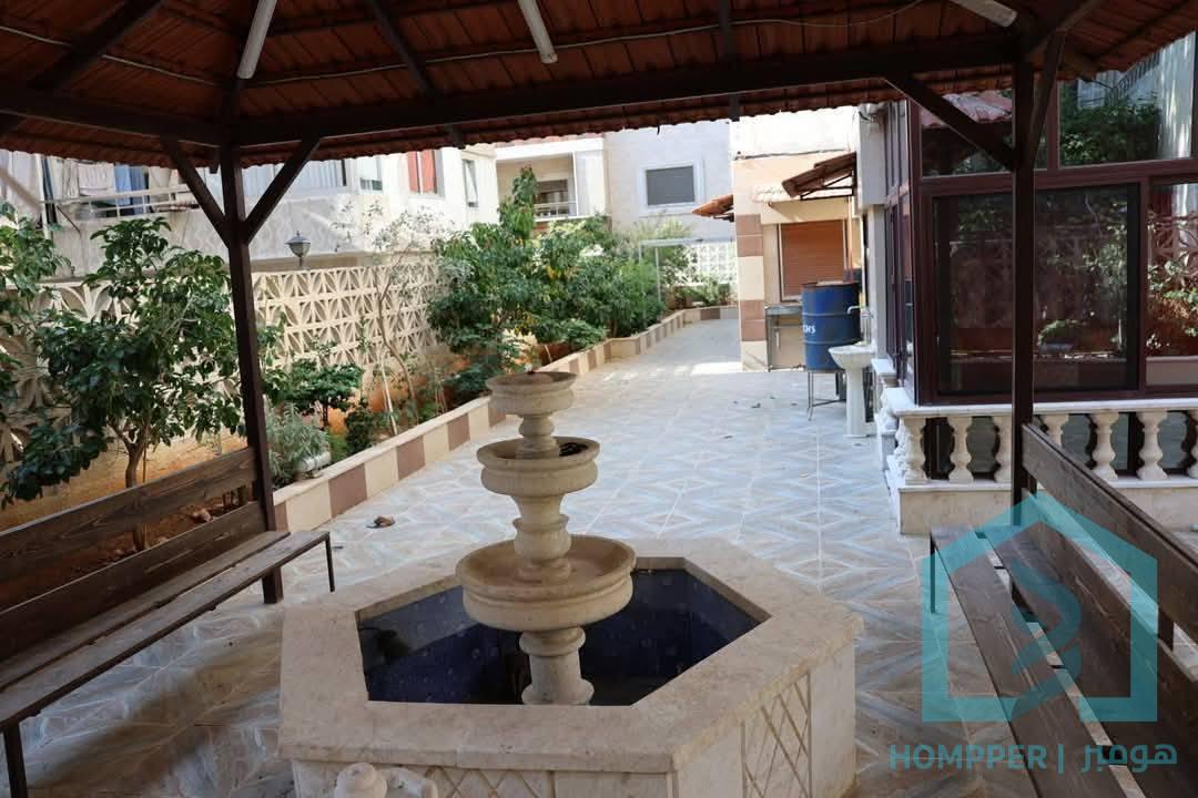 المساحه الاجمالية 500 م مع الخدمات المساحه الداخلية 285 م بلاطه كامله مفتوحة على كل الاتجاهات صالونات [ ضيوف + جلوس + سفره ] مطبخ + حمامين + ثلاث غرف نوم 2 منهما ماستر حديقة وتراسات ضمنها جلسة النافوره الحديقه مشجرة بعض الفواكه الاستوائيه وبعض اشجار الحمضيات ونباتات الزينة طابو نظامي 2400 سهم