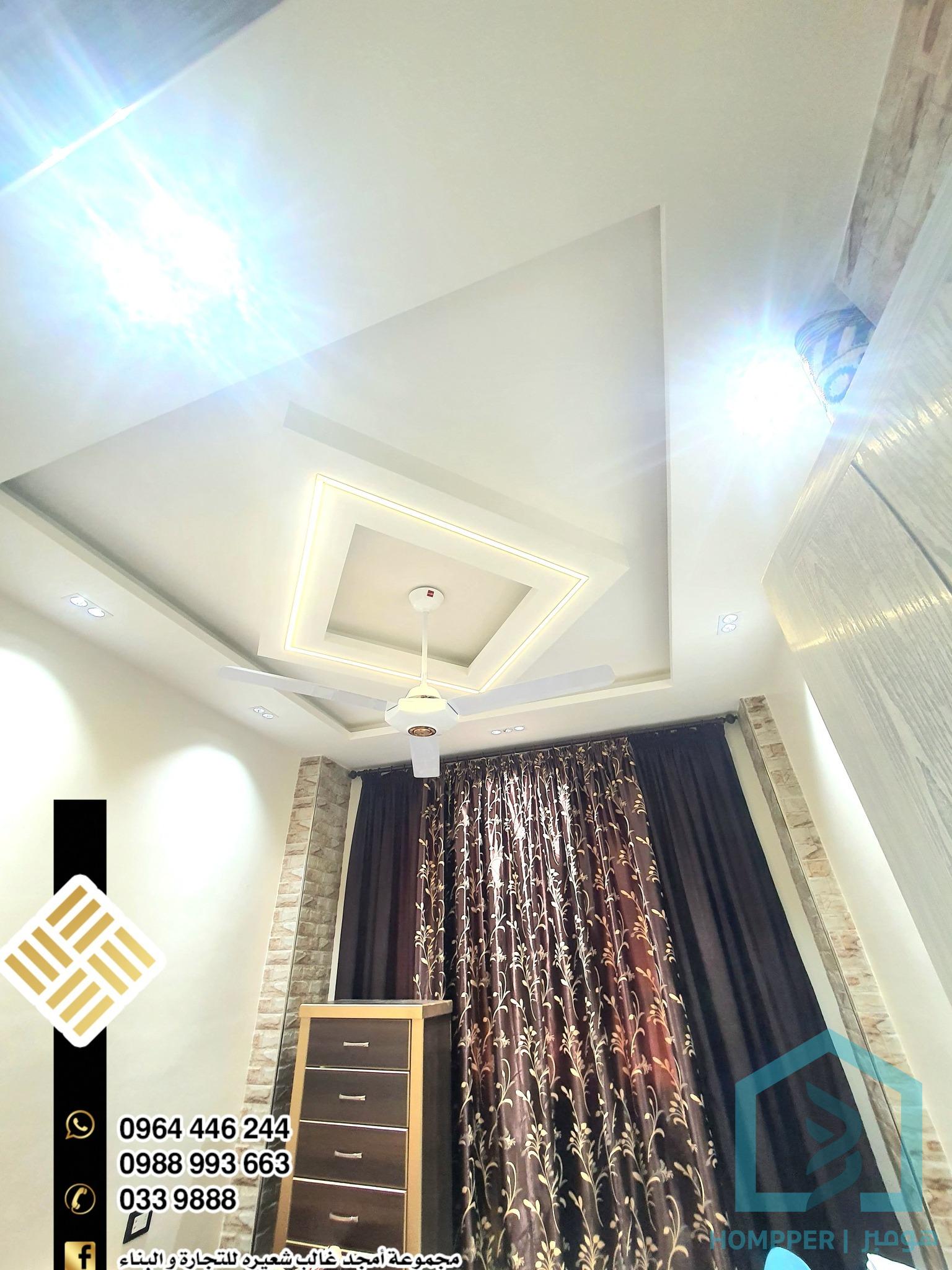 غرفتين وصالون كبير + طاقة كهرباء طابق : تاني فني مساحة 100متر اكساء ديلوكس
