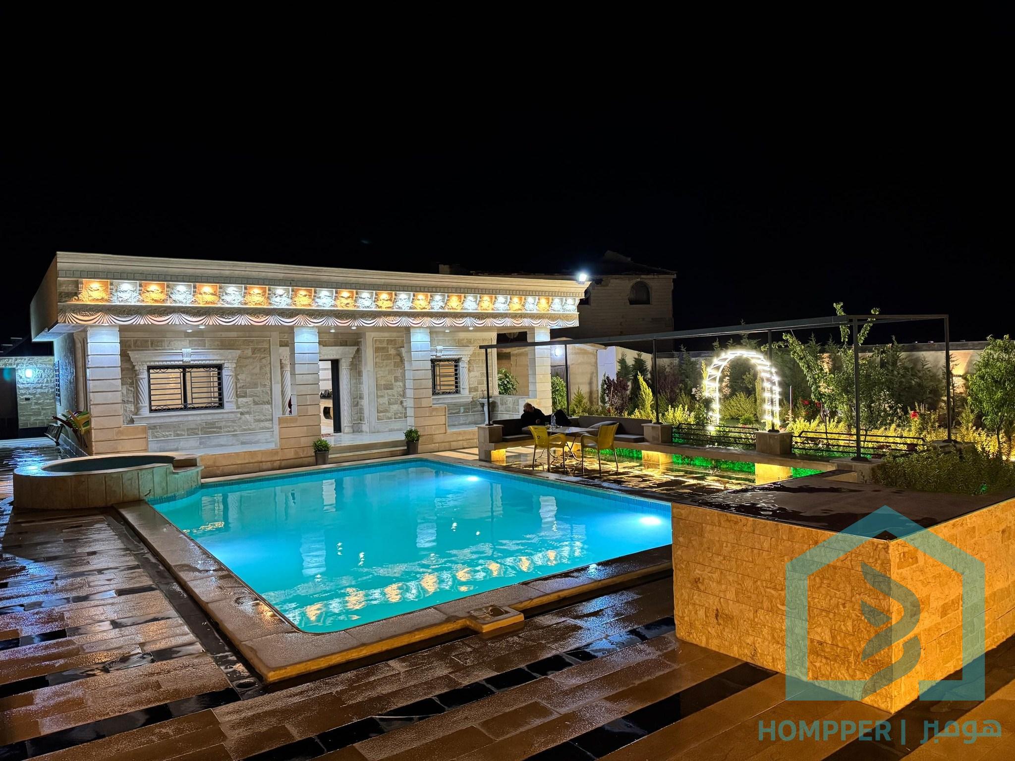 مزرعة موديرن للبيع #دروشا_ قبل العين _تبعد عن اتستراد القنيطرة ١٠٠م المساحة 940م٢ _ طابو اخضر بناء حجر طبيعي بالكامل إكساء سوبر ديلوكس سكن للحارس _ مسبح مفلتر طاقة شمسية حديقة ملكية البيع بسعر التكلفة