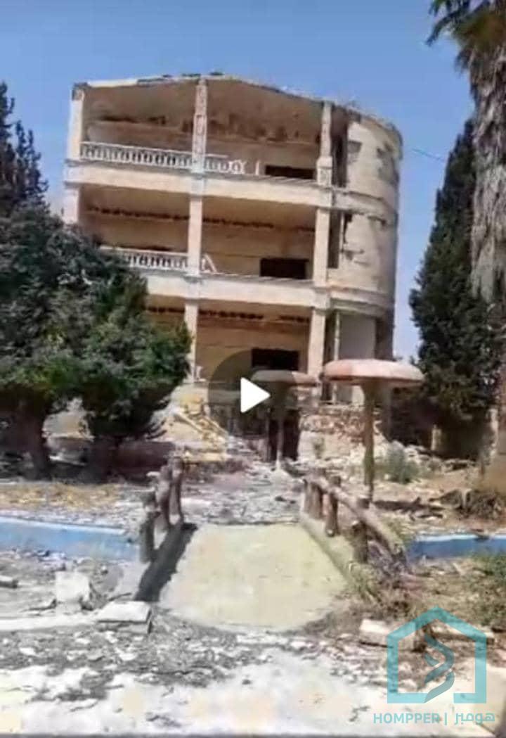 الريف الشمالي للبيع فيلا على استراد حلب غازي عنتاب منطقة كفر حمرة بناء مؤلف من ثلاث طوابق كل طابق 5 غرف ومنافع. مع مسبح المساحة 1400 متر واجهة 23 متر داخل التنظيم فراغة طابو
