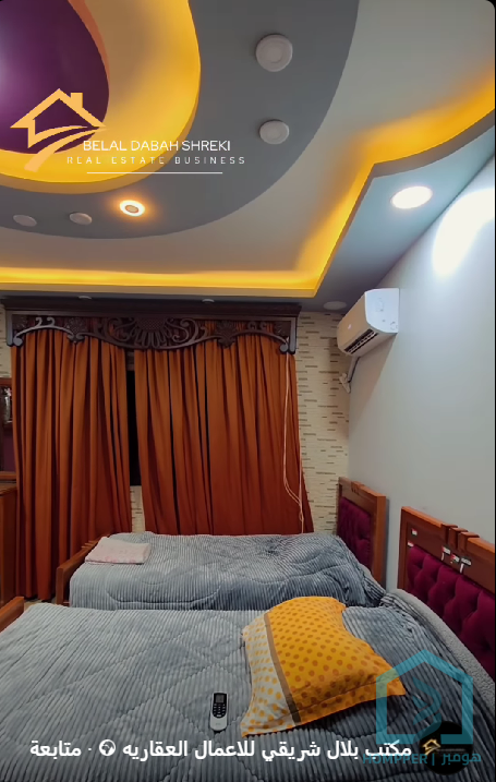 مساحة الشقة ٢١٠ متر الشقة مؤلفة من صالة استقبال واسعة مع جلسة سفرة وثلاث غرف نوم مطبخ وحمامين وبرندا كبيرة الشقة ضمن بناء حديث ومخدم وكراج سيارات ومصعد طابق ثاني طابو ٢٤٠٠