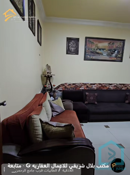 شقة للبيع بمساحة 100 متر طابق اول طابو 2400 غرفة وصالون ومطبخ وحمامين وبرندا حول الشقة