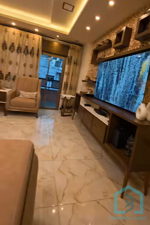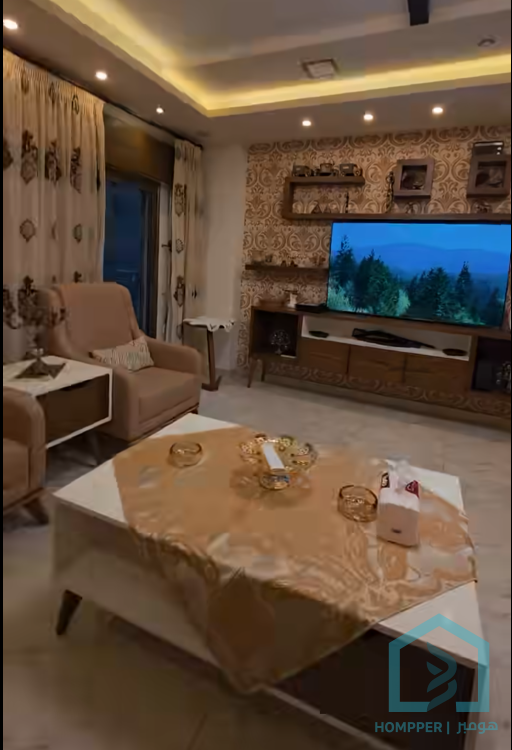 شقة ديلوكس للبيع بمساحة 127 متر الشقة مؤلفة من صالة استقبال مع جلسة سفرة وغرفتين نوم وحمام ضيوف وحمام عائلي وبرندا ضمن بناء جديد ملبس حجر ومخدم طابو 2400 نظام كاميرات مراقبة قابلية البيع مع الفرش والطاقة الشمسية غرفة خدمات حارس بناء طابق 4 مع مصعد طابو 2400 السعر مع الفرش والطاقة