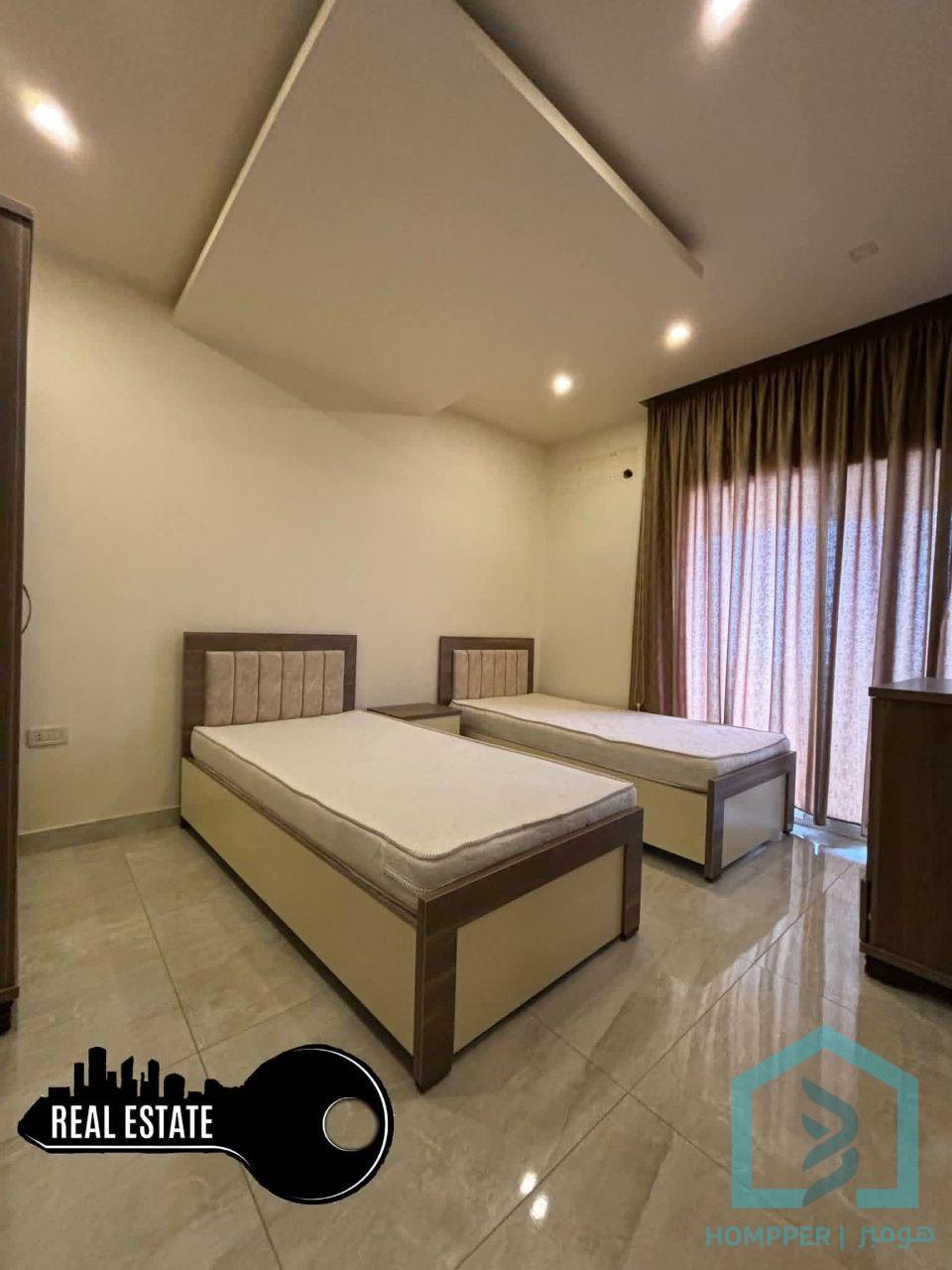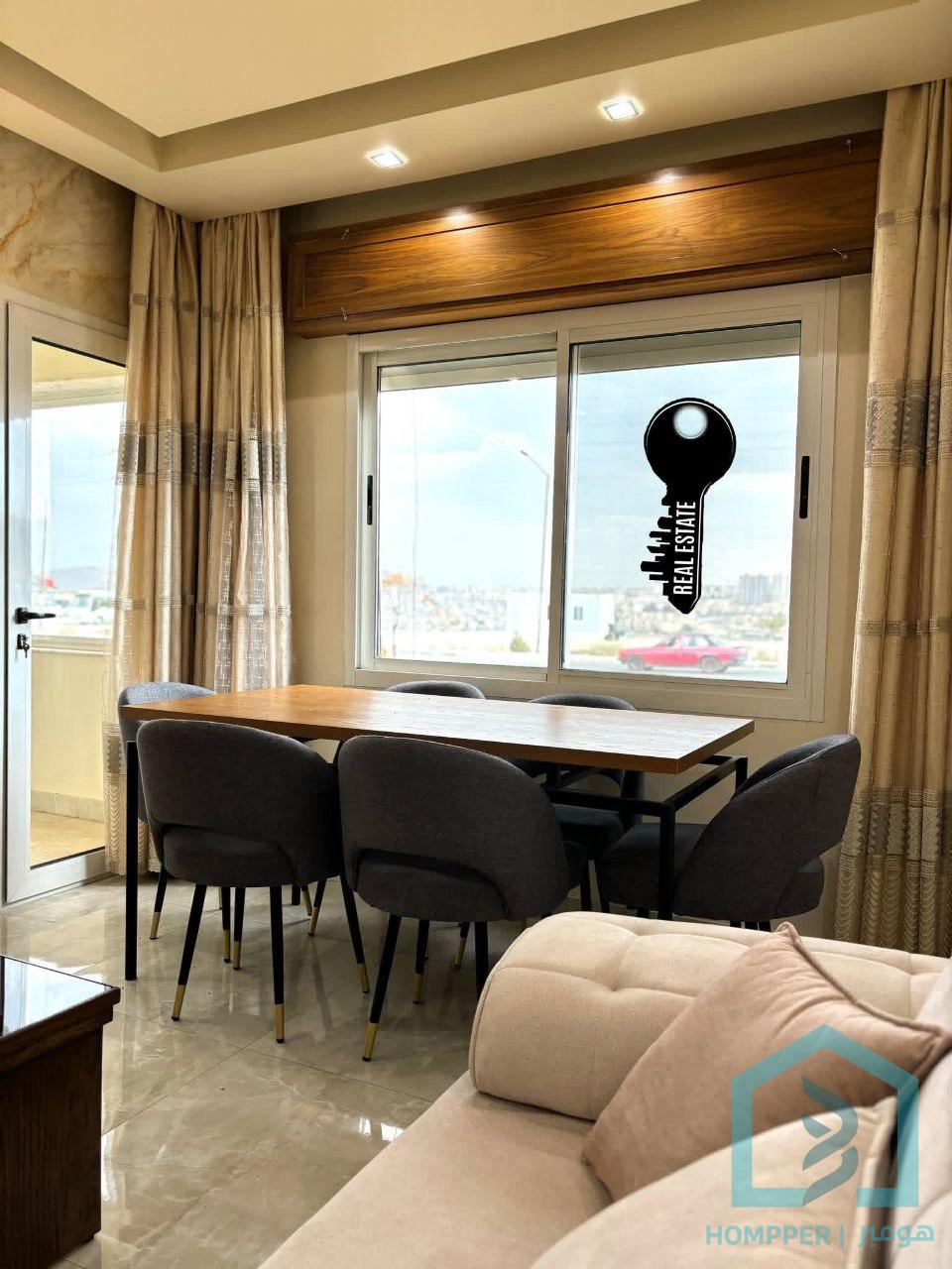 للبيع شقة مع الفرش و الطاقة ليثيوم طابق ثاني أطلالة مساحة 100م عبارة عن 2غرفتين نوم مقاس كبير .. صالون .. مطبخ .. حمام .. موزع .. بلكون . إكساء و فرش سوبر .فراغ طابو . سطح مشترك .