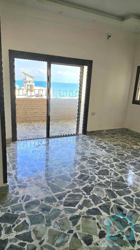 للبيع شقة باطلالة مفتوحة بحرية قبلية طابق رابع ، بمساحة 80 متر مؤلفة من غرفة وصالون وبلكونة كبيرة طابو 126 سهم مالية عقارية