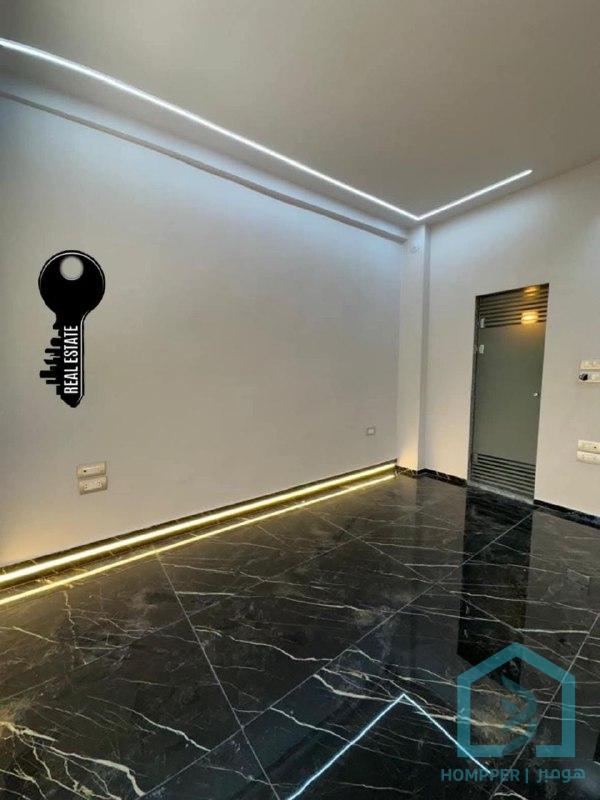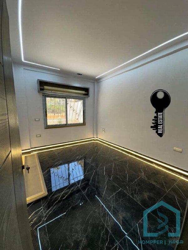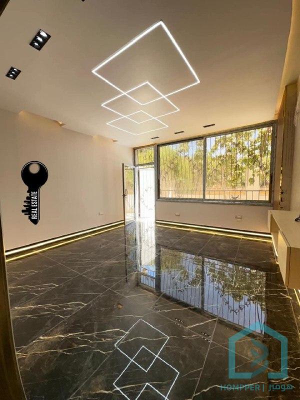 للبيع شقة أرضية في طابق أرضي طلوع مساحة 90م داخلي و 80م خارجي عبارة عن 2غرفتين نوم .. صالون واسع .. مطبخ .. حمام2 .. حديقة أمامية و حديقة خلفية . إكساء سوبر جديد .. فراغ طابو .. سطح مشترك