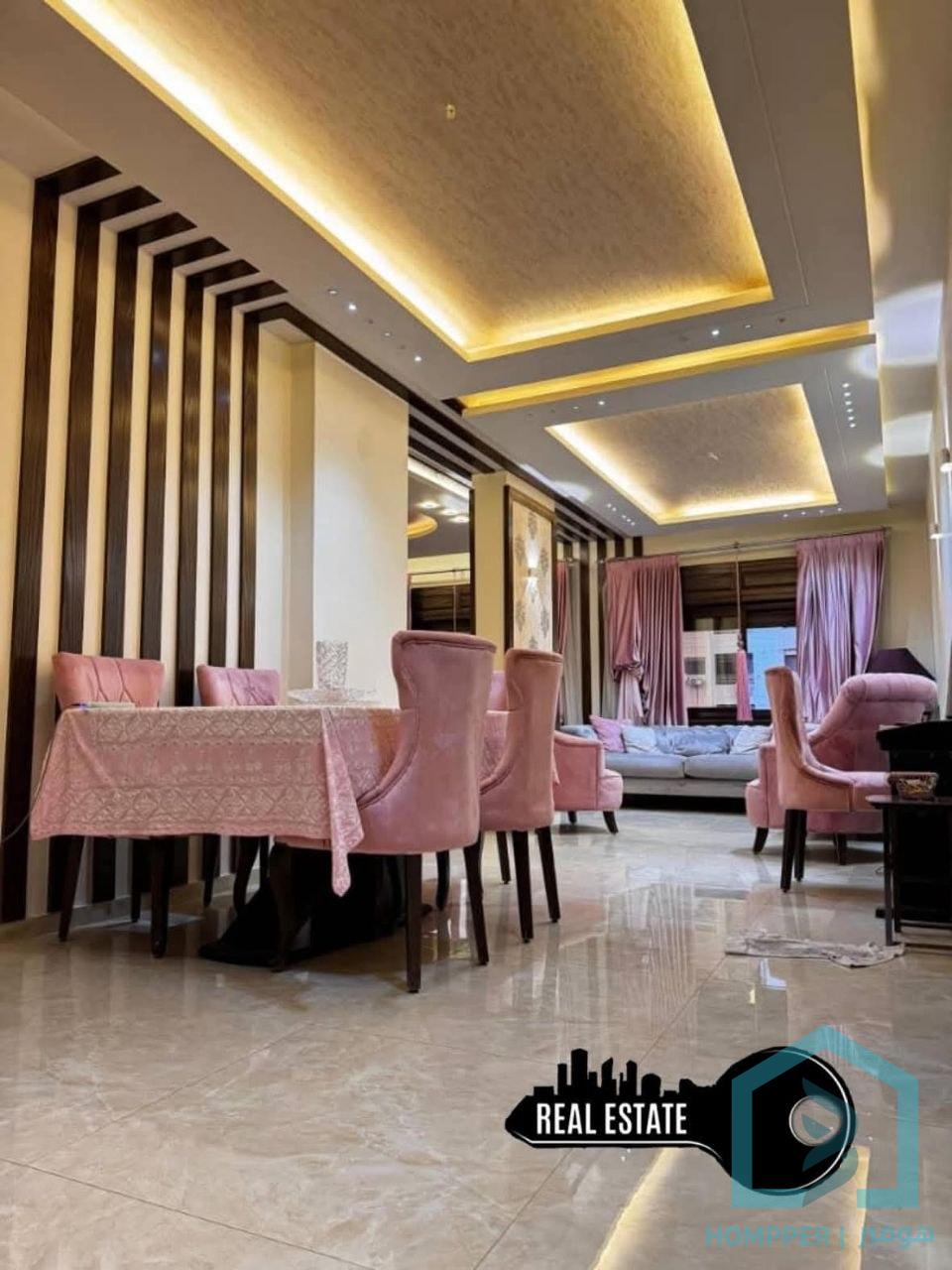 للبيع مع الفرش شقة في مشروع دمر 1. مساحة 160 متر مربع. 2. مكون من /3/ غرف نوم و صالون ل و مطبخ و /3/ حمامات 2 منون ماستر و برندة عدد 2 ، واحدة منها مغلقة بالسيكوريد. 3. طابق ثاني. 4. السيراميك أسباني نخب أول. 5. الألمنيوم من مدار بطبقة زجاج دبل. 6. أباحورات كهرباء متصلة مباشرة مع الانفيرتر 7. خزانة حائط للسجاد و البطانيات و حقائب السفر. 8. سخان طاقة شمسية. 9. انارة توفير طاقة في كامل المنزل. 10. تمديدات مكيف عدد 5 بمافي ذلك المطبخ. 11. تمديدات شاشة عدد 5 . 12. انفيرتر عدد 2 مع تمديدات داخلية بالكامل. 13. برايز كهرباء موصولة داخلياً مع الانفيرتر.. لزوم تشغيل الشاشات و الشواحن و ماشابه. 14. مصعد عدد 2 مع طاقة شمسية. 15. شوفاج مستقل للحمامات و جميع الغرف. 16. مطبخ هايغلوس متكامل مع غاز غطس و فرن كروم صناعة ايطالية. 17. جميع الخلاطات من غروهي 18. اكساء سوبر ديلوكس. 19. خزانات مياه مركزية. 20. كراج مستقل مع بوابة ريموت كونترول. 21. كاميرات مراقبة في جميع الاتجاهات. 22. حدائق و مساحات خضراء 23. حارس و خدمات نظافة كاملة.