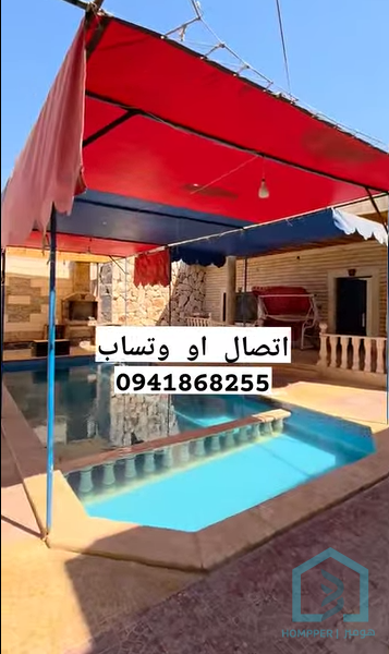 مزرعة للبيع مجهزة بطاقه شمسية غربي التستراد الدولي ب 500متر المساحة 390متر مربع البناء 90متر مؤلف من غرفتين ومطبخ ومنافع مسبح ملفتر شلال تراس حديقه بربكيو الملكيه اسهم من اصل العقار