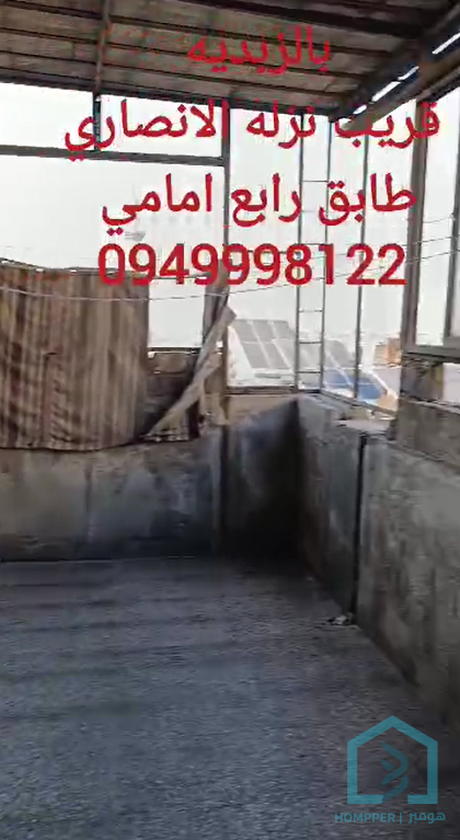 الزبدية قريب من شارع الئيسي خلف جامع البتول طابق رابع طابو اخضر 2 غرفتين وصالون يوجد صيفية مساحة 100 متر