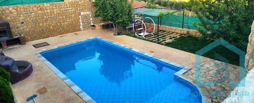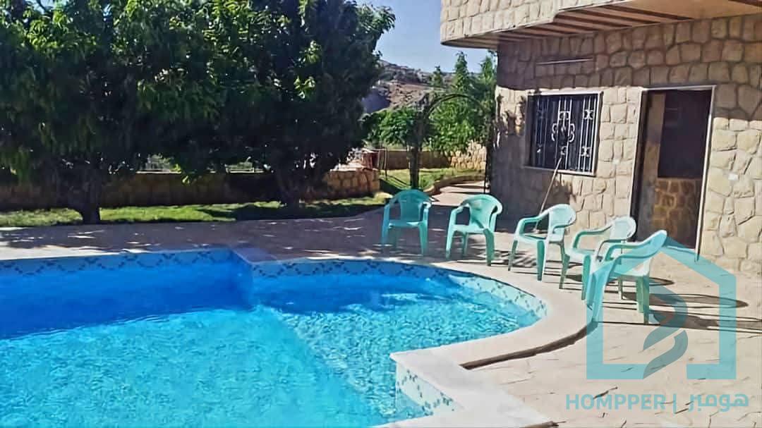 مزرعة للاجار مزرعة بغاية الجمال والأناقة رقم المزرعة 25 غرفتين نوم صالون حمامين عدة كاملة للشوي وللمطبخ مسبح مفلتر١٢ ب ٥ غماقة من المتر للمترين ونص + جاكوزة للأطفال قعدات كتير حلوة و بتجنن سوبر سوبر ديلوكس كهرباء ممتازة + طاقة شمسية 24 قعدة جنب المسبح من الخيال موجود جنينة واسعة وأشجار مثمرة كاملة ماناقصها شي ملاحظة : مع إمكانية تلبية كافة متطلبات الزبائن من خارج المزرعة للاجار اليومي ب 800 الف سوري